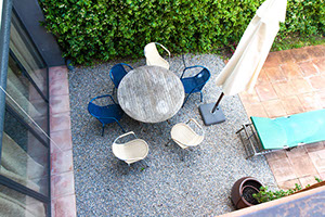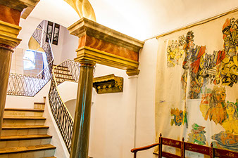 Par la Rue R. de Cabrera, vous entrez par les deux grandes portes cochères en bois d’une hauteur de 3.5 m. Vous accédez au rez-de-chaussée par le hall d’entrée qui laisse apercevoir la grandeur de l’escalier d’origine. Vous marchez sur des carreaux de ciment, mosaïque disposées de manière aléatoire en patchwork.